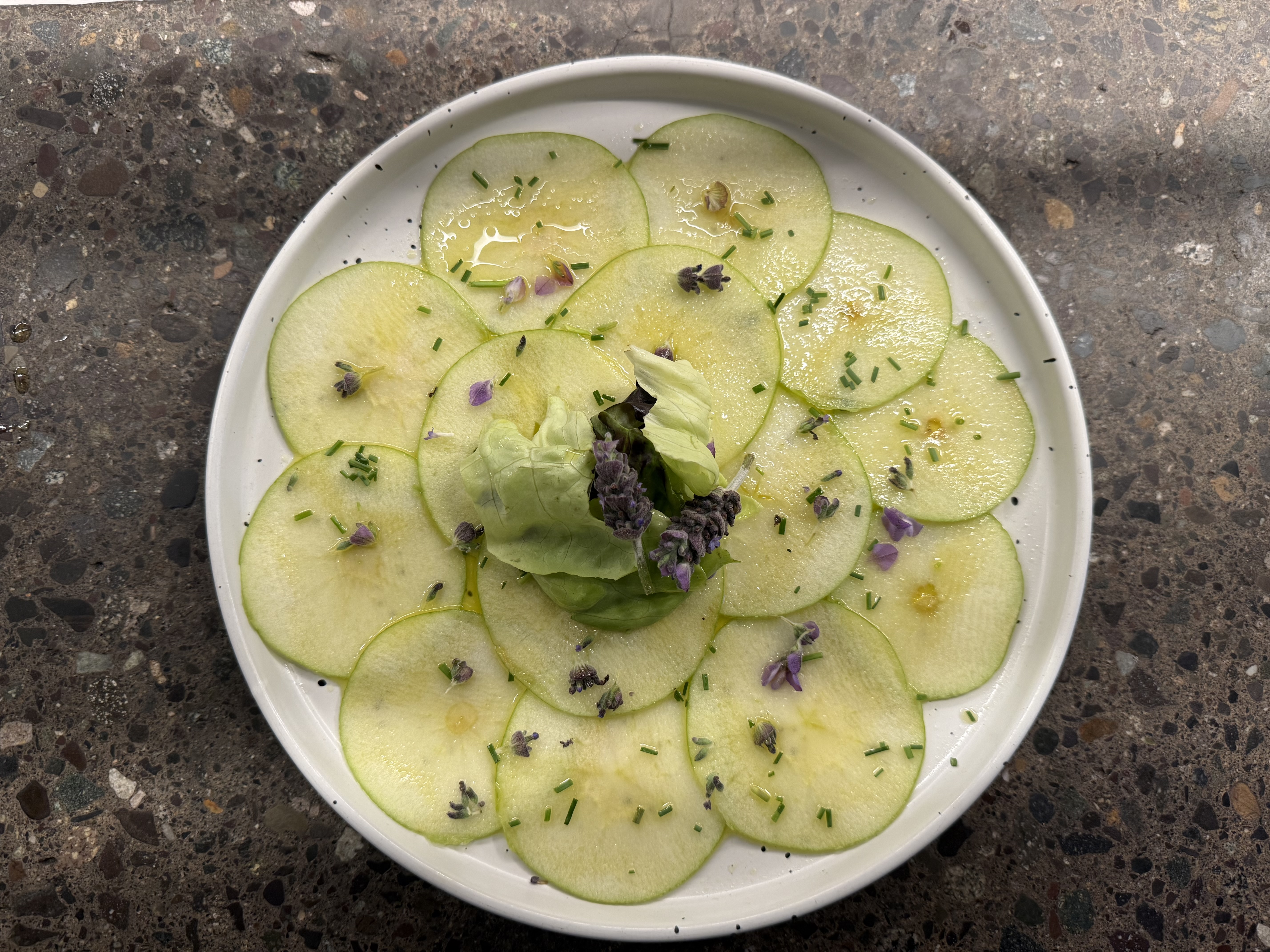 Base de toscano , con humus levemente picante, con pejerrey y camarón